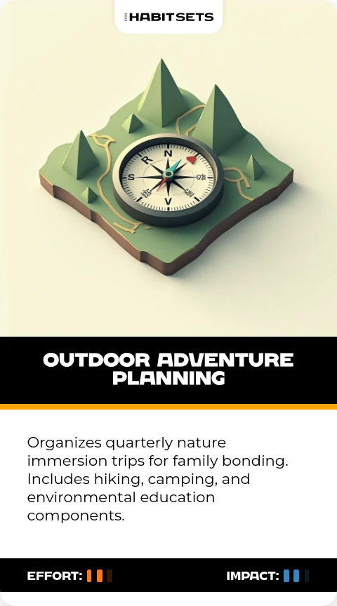 Organizes quarterly nature immersion trips for family bonding. Includes hiking, camping, and environmental education components.