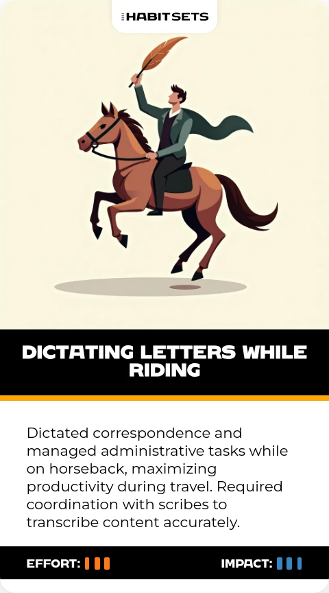 Julius Caesar used this habit to maintain constant communication and control over his military campaigns and political affairs. It allowed him to multitask efficiently, ensuring no time was wasted during marches or travel.