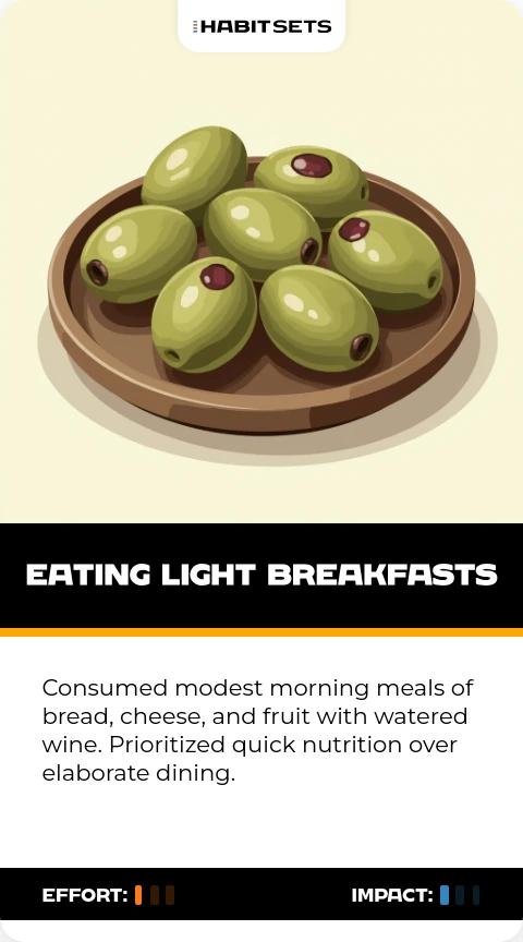 Caesar valued morning productivity and avoided sluggishness from heavy meals. The habit aligned with Roman aristocratic norms of self-discipline.