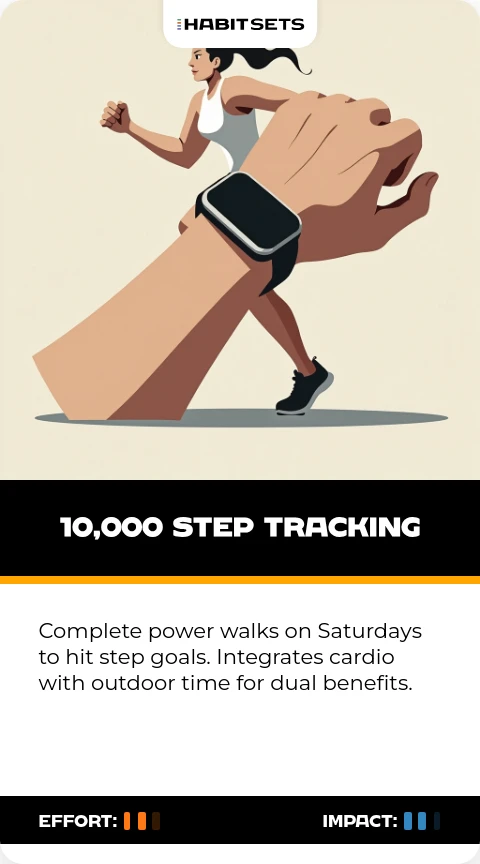 Complete power walks on Saturdays to hit step goals. Integrates cardio with outdoor time for dual benefits.