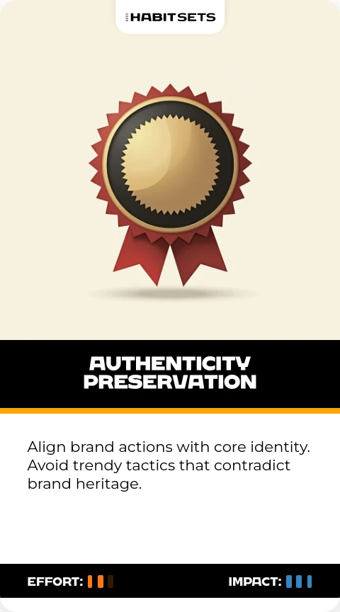 Align brand actions with core identity. Avoid trendy tactics that contradict brand heritage.