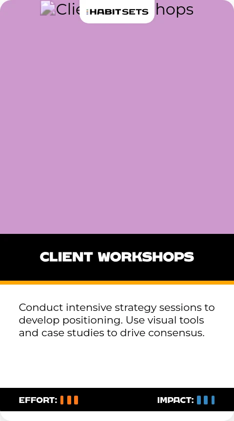 Conduct intensive strategy sessions to develop positioning. Use visual tools and case studies to drive consensus.