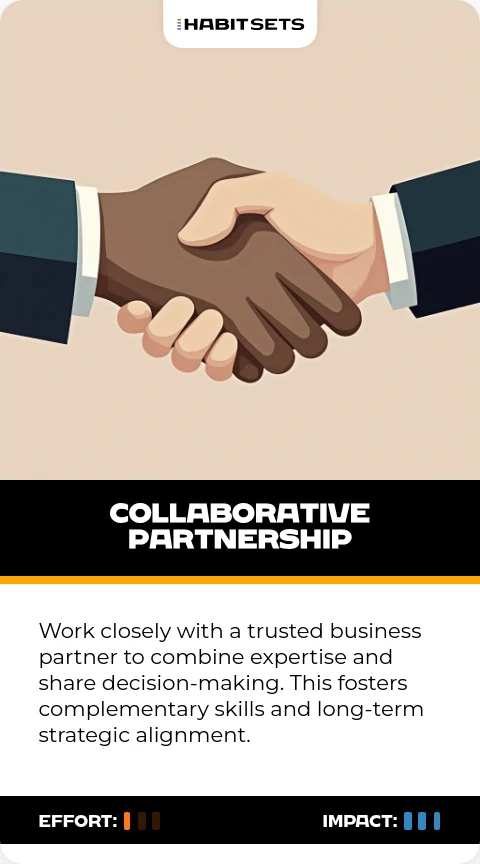 Work closely with a trusted business partner to combine expertise and share decision-making. This fosters complementary skills and long-term strategic alignment.