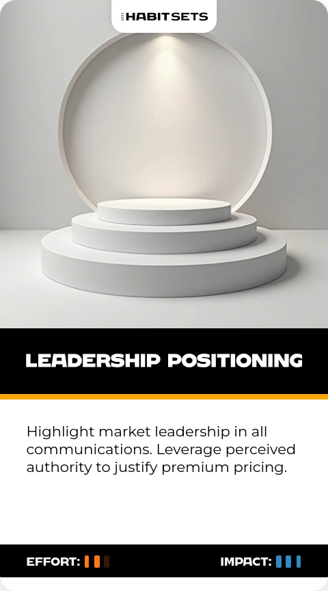 Highlight market leadership in all communications. Leverage perceived authority to justify premium pricing.