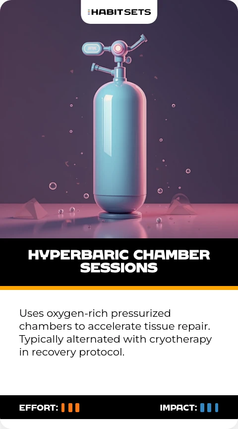 Uses oxygen-rich pressurized chambers to accelerate tissue repair. Typically alternated with cryotherapy in recovery protocol.
