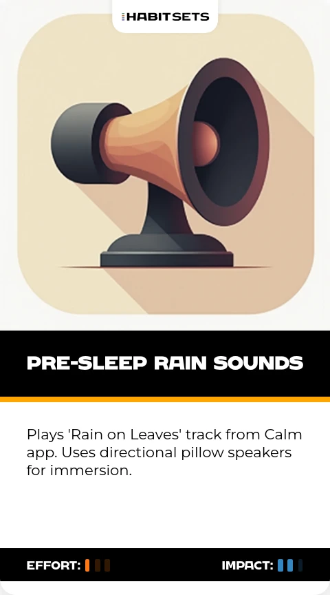 Plays 'Rain on Leaves' track from Calm app. Uses directional pillow speakers for immersion.