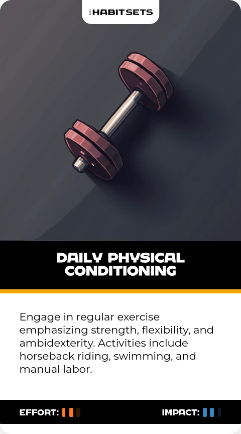 Engage in regular exercise emphasizing strength, flexibility, and ambidexterity. Activities include horseback riding, swimming, and manual labor.