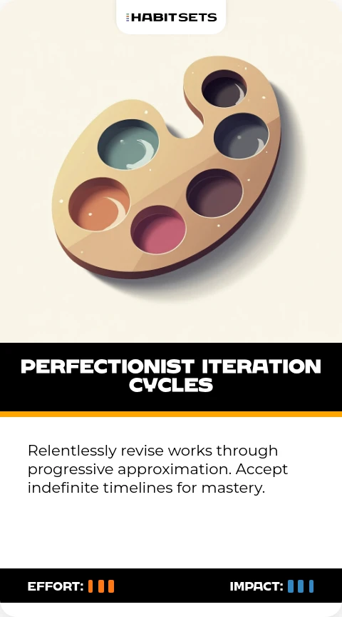 Relentlessly revise works through progressive approximation. Accept indefinite timelines for mastery.