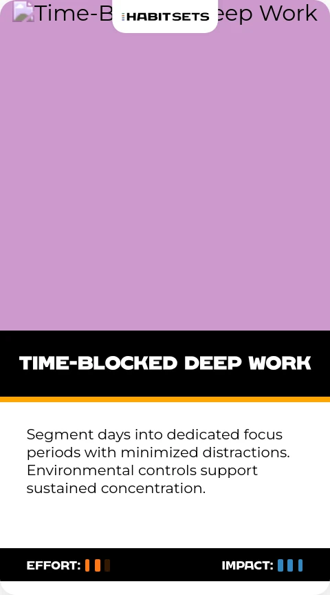 - Structured Focus: Time-Blocked Deep Work and Hierarchical Task Prioritization emphasize the importance of dedicated focus periods and organized task management for deep work and efficient output.
