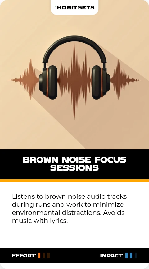 Listens to brown noise audio tracks during runs and work to minimize environmental distractions. Avoids music with lyrics.