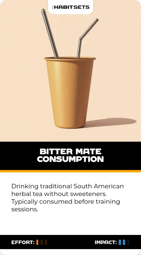 Drinking traditional South American herbal tea without sweeteners. Typically consumed before training sessions.