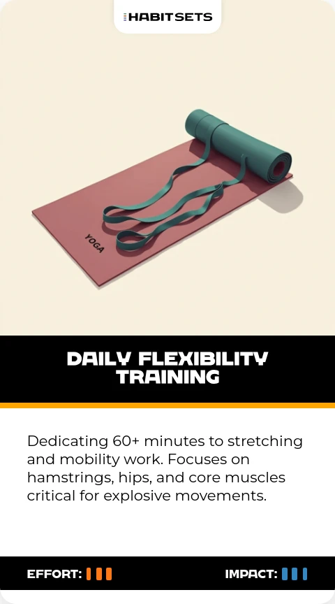 Dedicating 60+ minutes to stretching and mobility work. Focuses on hamstrings, hips, and core muscles critical for explosive movements.