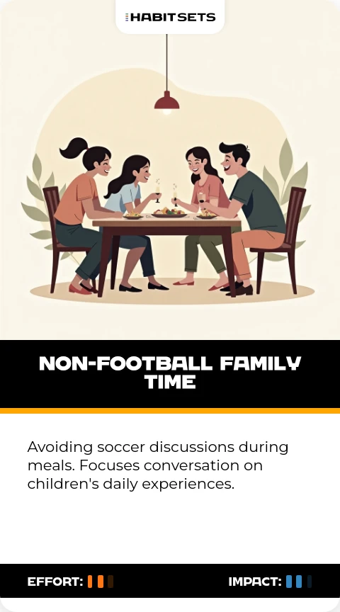 Avoiding soccer discussions during meals. Focuses conversation on children's daily experiences.