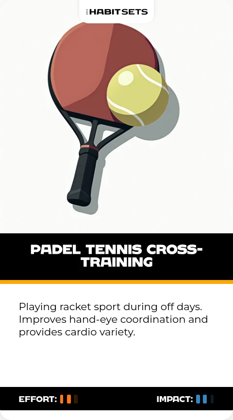 Playing racket sport during off days. Improves hand-eye coordination and provides cardio variety.