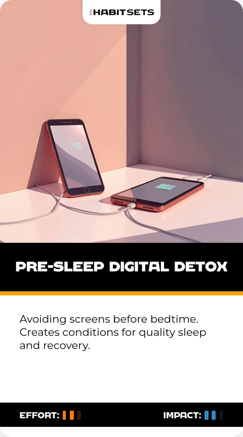 Avoiding screens before bedtime. Creates conditions for quality sleep and recovery.