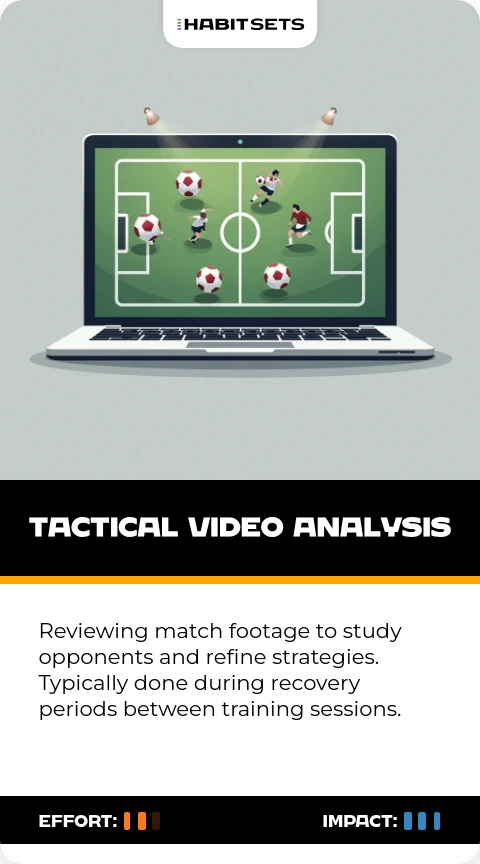 Reviewing match footage to study opponents and refine strategies. Typically done during recovery periods between training sessions.