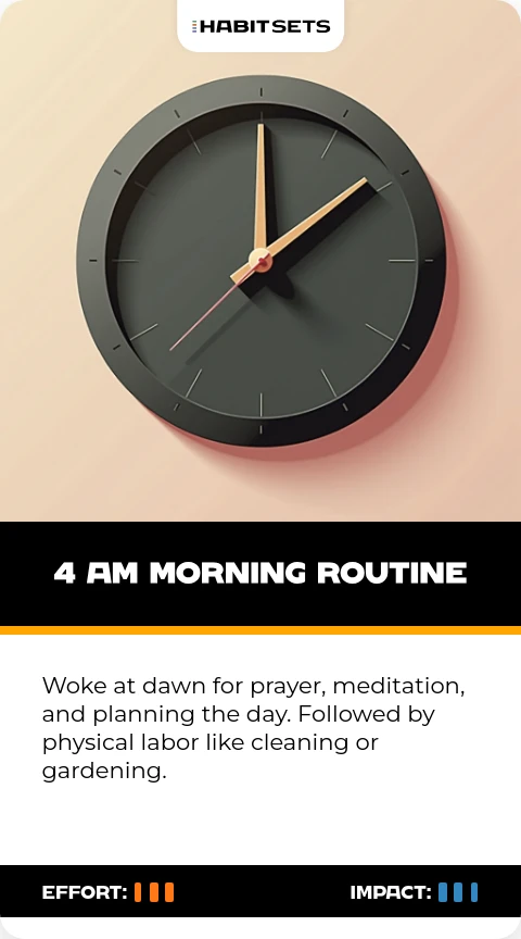 - Discipline and Routine: Structured Days for Clarity. His rigorous daily routines, like the 4 AM wake-up and silence Mondays, cultivated self-discipline, mental clarity, and focused energy.