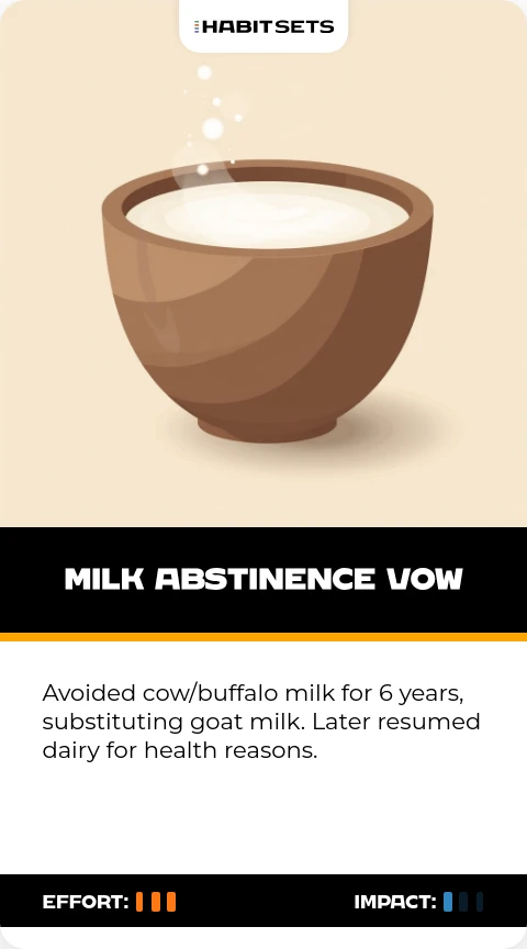 Avoided cow/buffalo milk for 6 years, substituting goat milk. Later resumed dairy for health reasons.