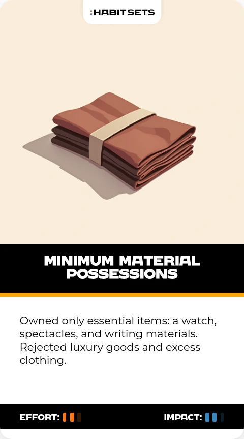 Owned only essential items: a watch, spectacles, and writing materials. Rejected luxury goods and excess clothing.