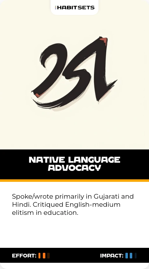 Spoke/wrote primarily in Gujarati and Hindi. Critiqued English-medium elitism in education.
