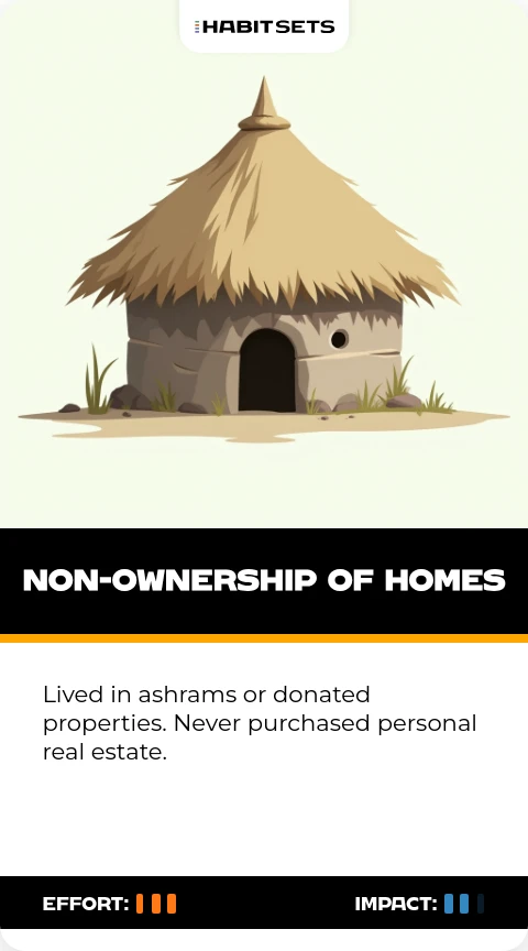 Lived in ashrams or donated properties. Never purchased personal real estate.