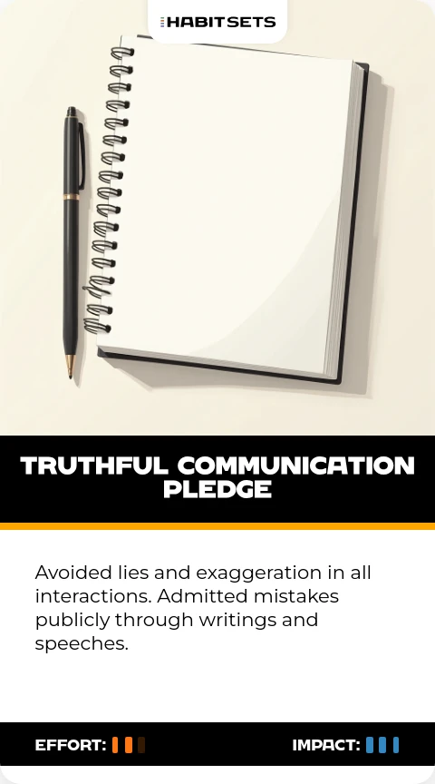 Avoided lies and exaggeration in all interactions. Admitted mistakes publicly through writings and speeches.