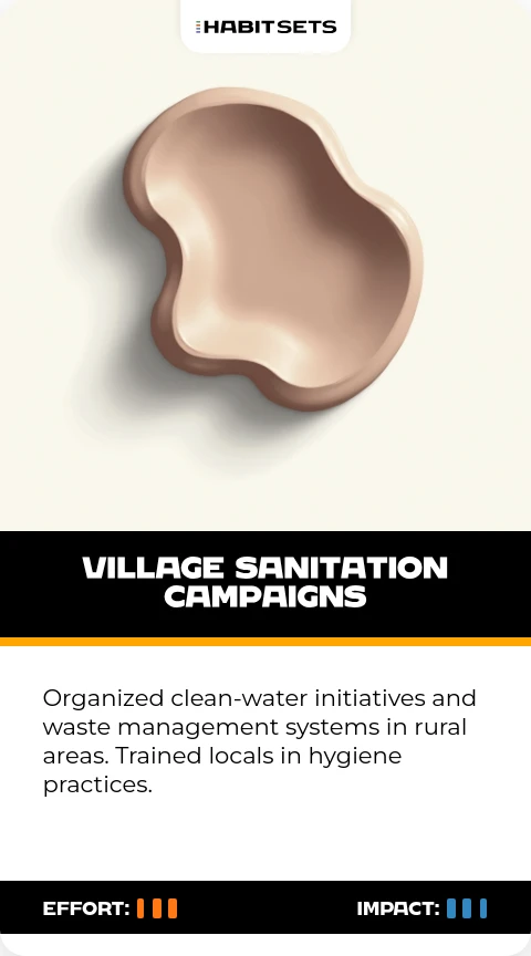 Organized clean-water initiatives and waste management systems in rural areas. Trained locals in hygiene practices.