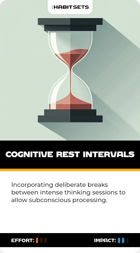 Incorporating deliberate breaks between intense thinking sessions to allow subconscious processing.