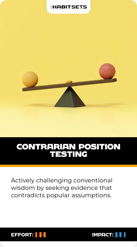 Actively challenging conventional wisdom by seeking evidence that contradicts popular assumptions.