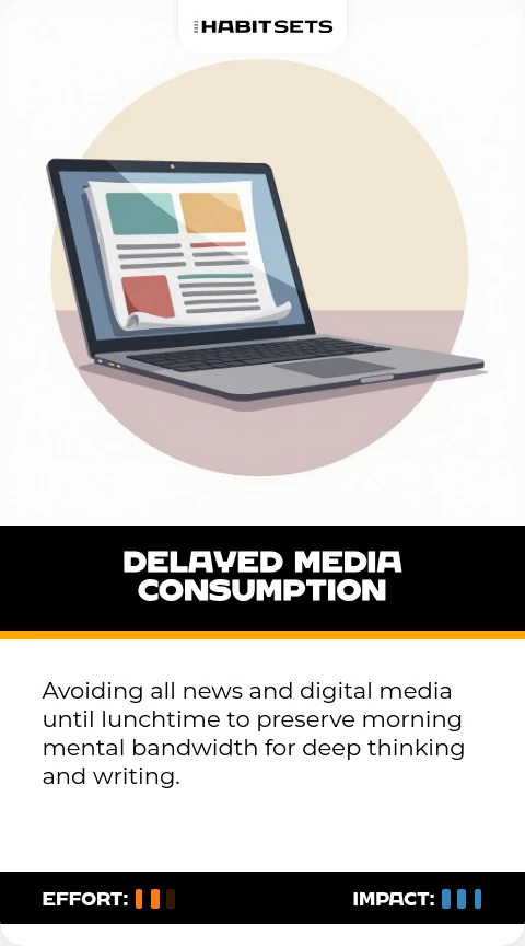 Avoiding all news and digital media until lunchtime to preserve morning mental bandwidth for deep thinking and writing.