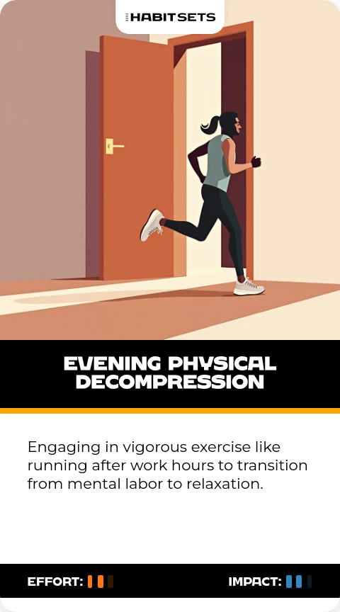 Engaging in vigorous exercise like running after work hours to transition from mental labor to relaxation.