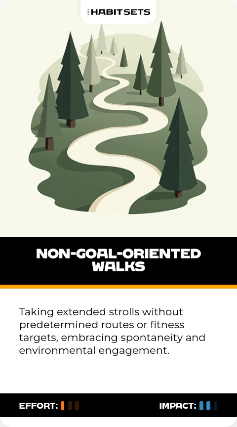 Taking extended strolls without predetermined routes or fitness targets, embracing spontaneity and environmental engagement.
