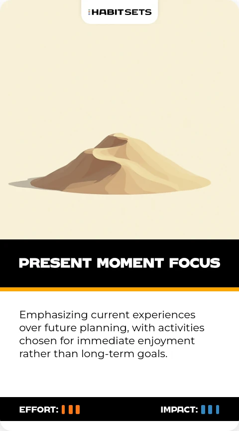 Emphasizing current experiences over future planning, with activities chosen for immediate enjoyment rather than long-term goals.