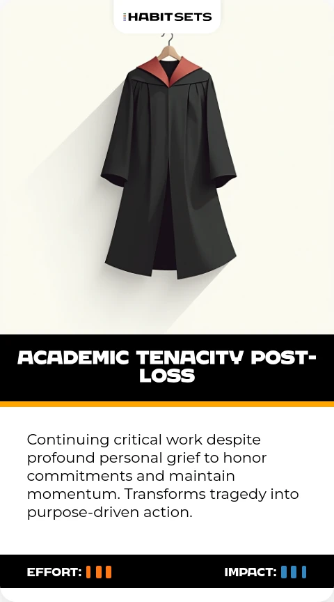 Continuing critical work despite profound personal grief to honor commitments and maintain momentum. Transforms tragedy into purpose-driven action.