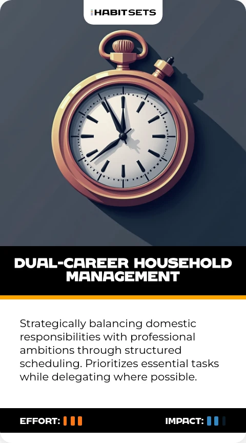 Strategically balancing domestic responsibilities with professional ambitions through structured scheduling. Prioritizes essential tasks while delegating where possible.