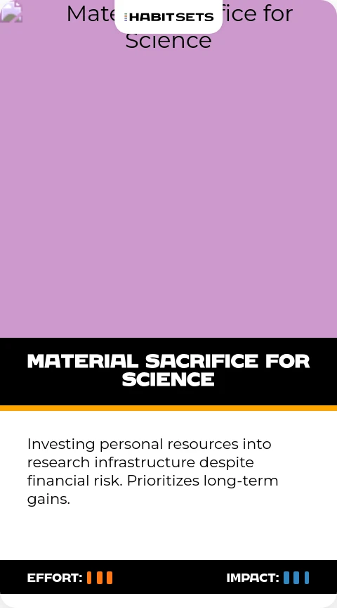 Investing personal resources into research infrastructure despite financial risk. Prioritizes long-term gains.