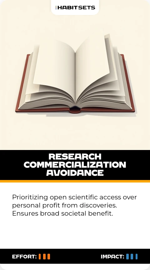Prioritizing open scientific access over personal profit from discoveries. Ensures broad societal benefit.