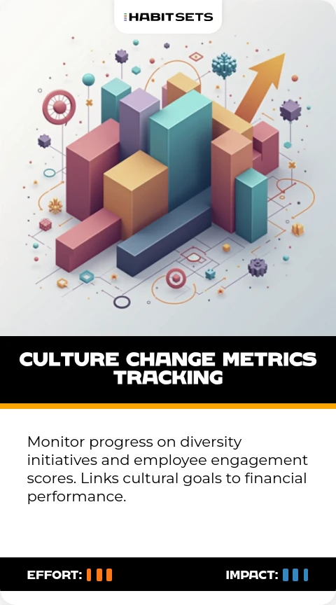 Monitor progress on diversity initiatives and employee engagement scores. Links cultural goals to financial performance.