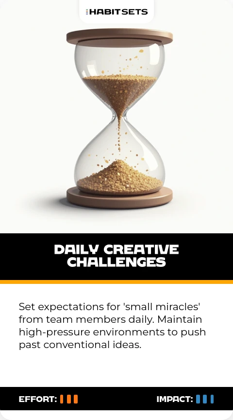 - Daily Creative Challenges: Demand 'small miracles' from yourself and your team. Use pressure to push beyond conventional thinking.