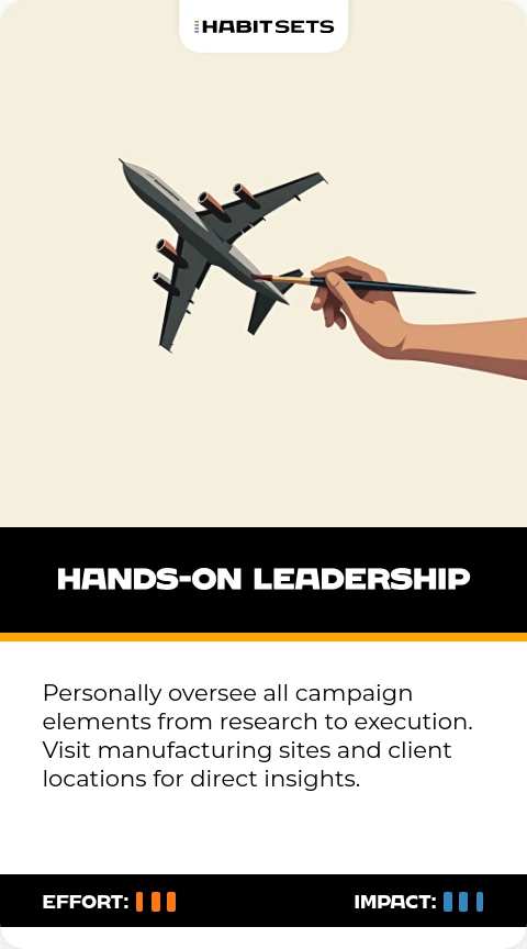 Personally oversee all campaign elements from research to execution. Visit manufacturing sites and client locations for direct insights.