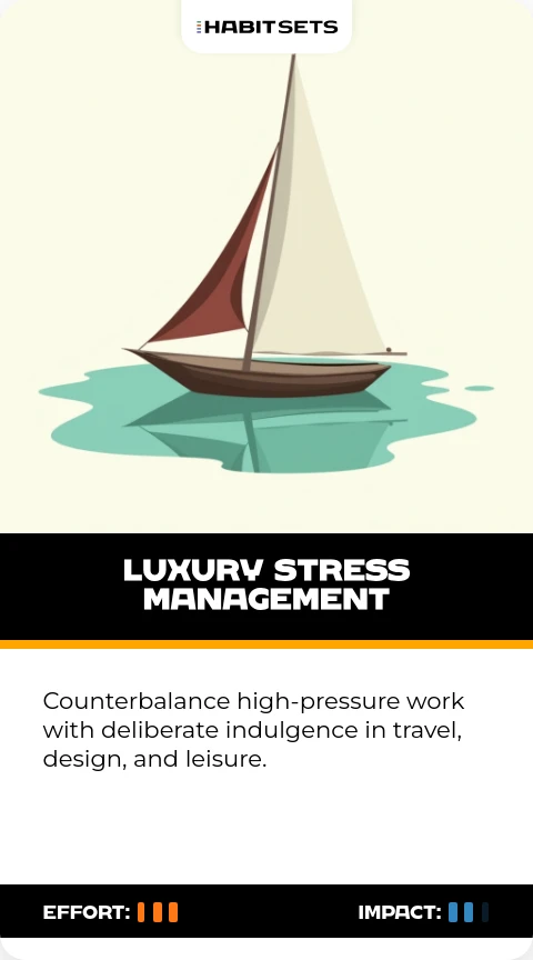 Counterbalance high-pressure work with deliberate indulgence in travel, design, and leisure.