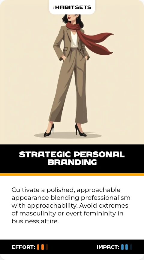 Cultivate a polished, approachable appearance blending professionalism with approachability. Avoid extremes of masculinity or overt femininity in business attire.