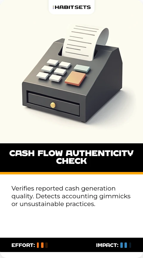 Verifies reported cash generation quality. Detects accounting gimmicks or unsustainable practices.