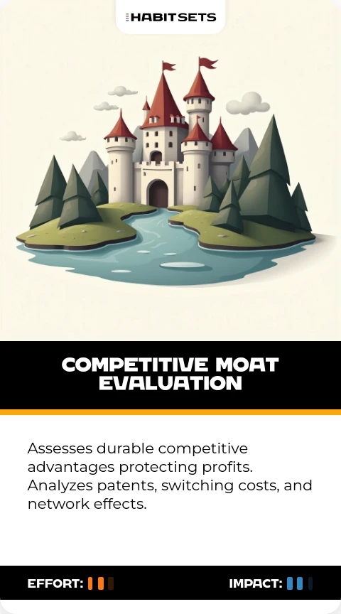 Assesses durable competitive advantages protecting profits. Analyzes patents, switching costs, and network effects.