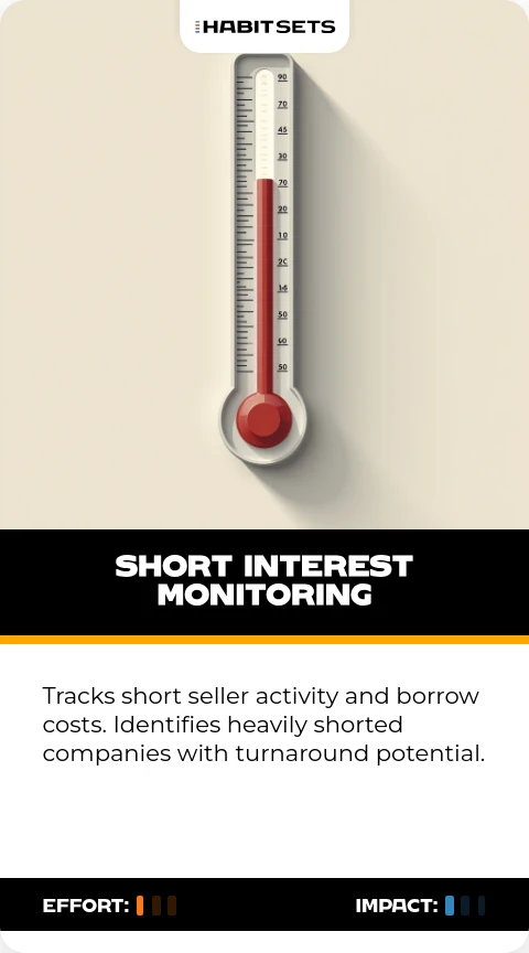 Tracks short seller activity and borrow costs. Identifies heavily shorted companies with turnaround potential.