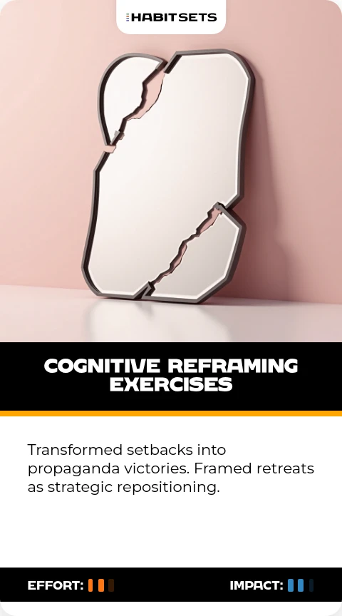 Transformed setbacks into propaganda victories. Framed retreats as strategic repositioning.