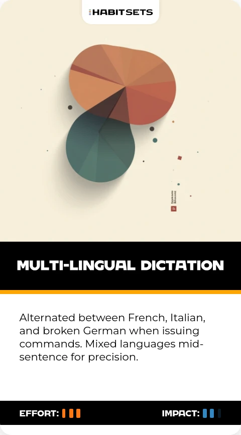 Alternated between French, Italian, and broken German when issuing commands. Mixed languages mid-sentence for precision.