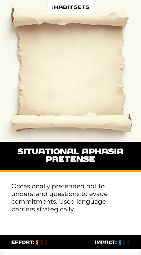 Occasionally pretended not to understand questions to evade commitments. Used language barriers strategically.