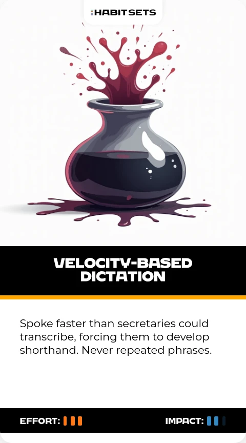 Spoke faster than secretaries could transcribe, forcing them to develop shorthand. Never repeated phrases.