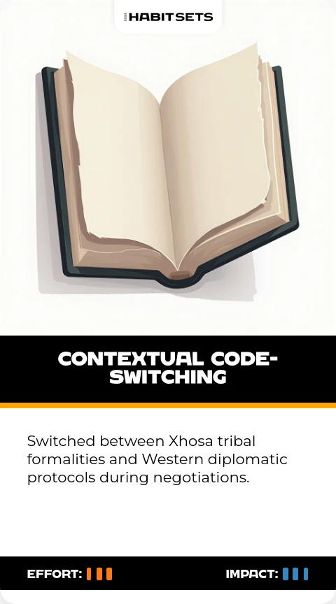 Switched between Xhosa tribal formalities and Western diplomatic protocols during negotiations.
